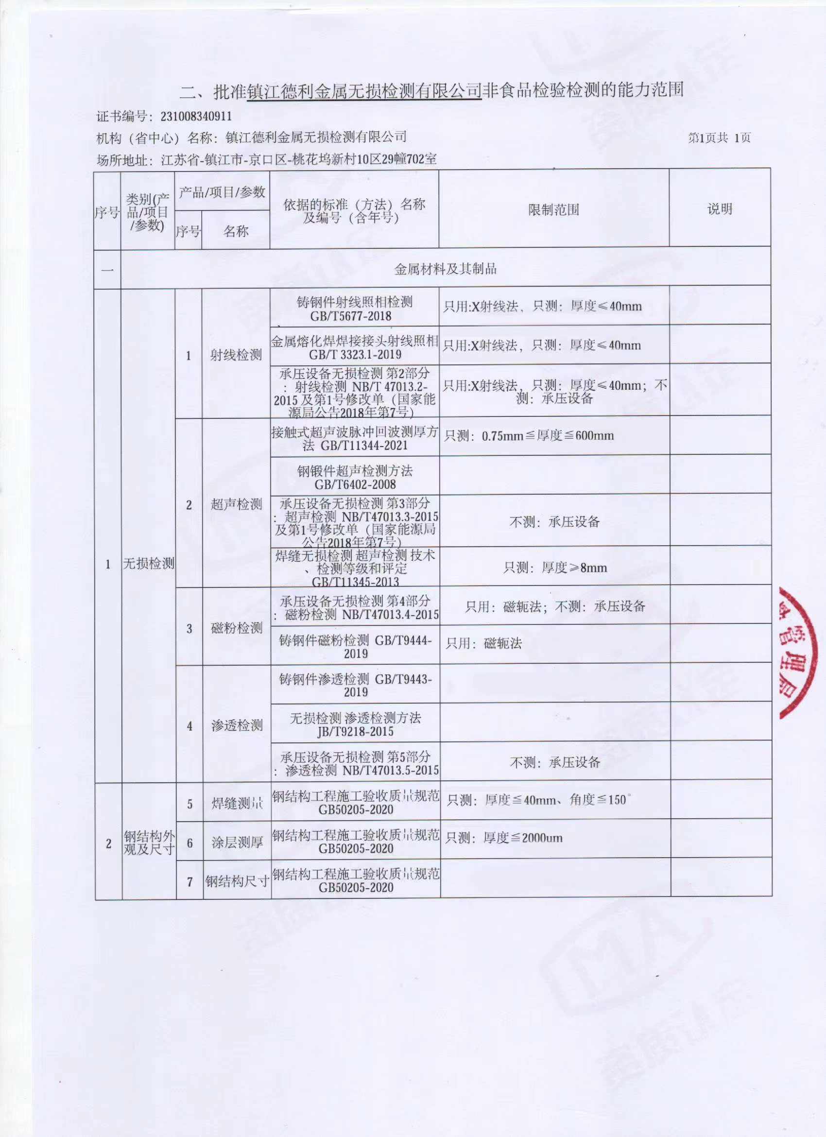 公司業務范圍:各類(射線、超聲波、磁粉、滲透)無損檢測業務和相關金屬產品半成品外觀檢驗測量及涂層測厚。